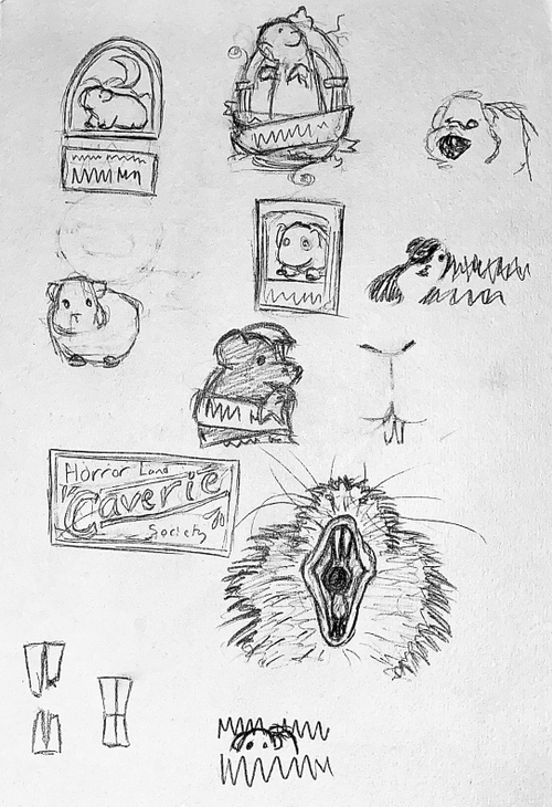 The logo was designed to play off the antique family portraits of the past. Specifically, it depicts a ferocious Guinea pig backed by a pair of stoic Elops, all emerging from the portrait, which can only mean trouble. A decorated frame that surrounds them references the antique, macabre design inspiration while grounding the logo against the background. The piece utilizes a subdued color scheme to reflect its dark nature and maintain a sophisticated appeal.